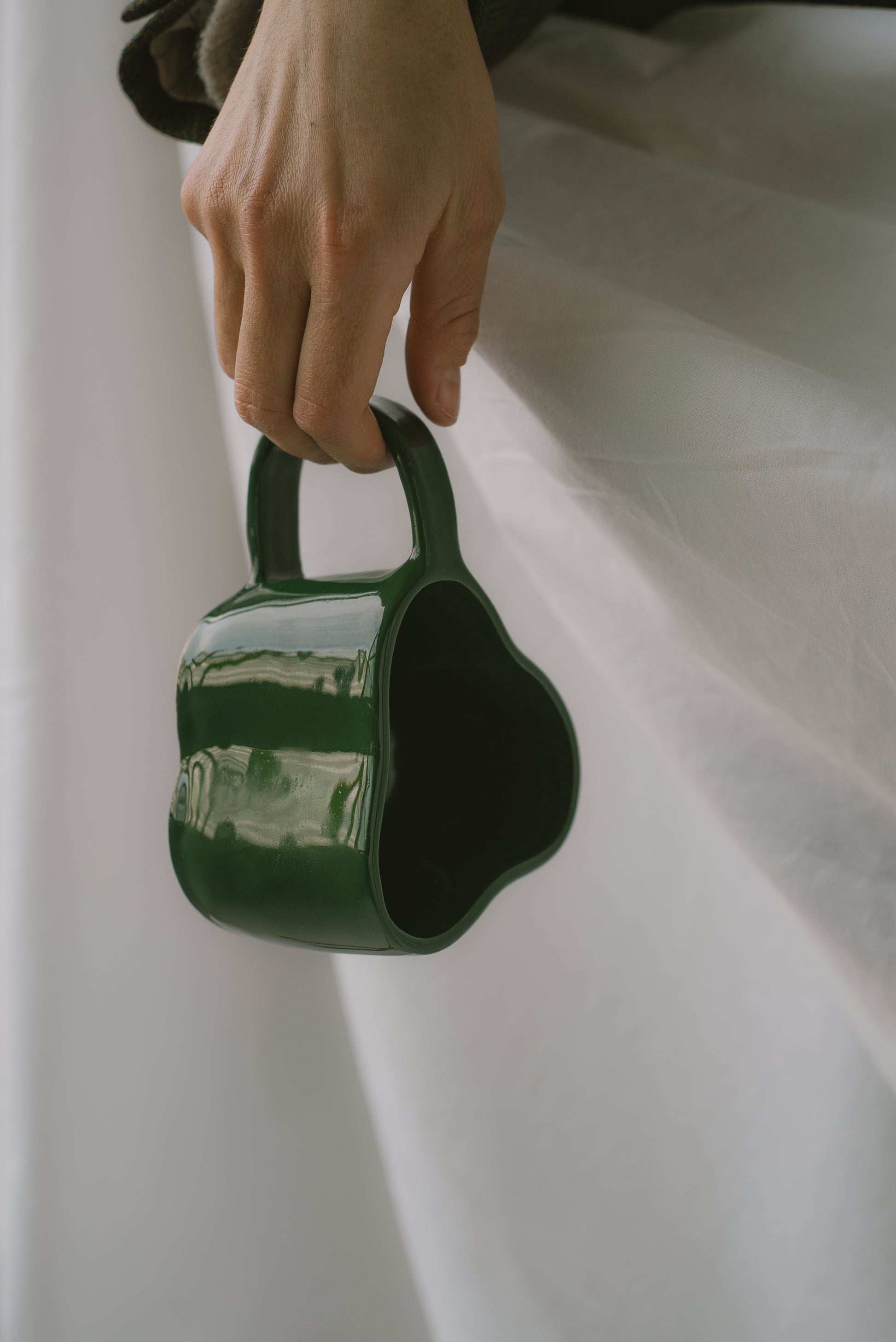 Realizzate a mano in gres e smaltate con un bellissimo smalto color verde bosco